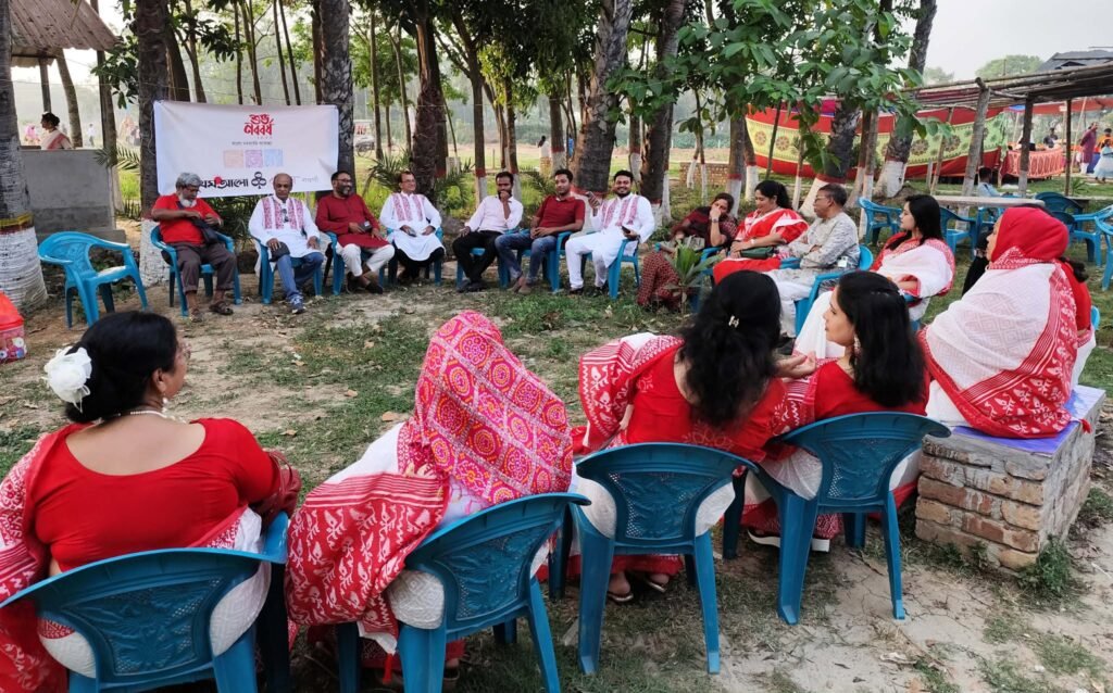 মঙ্গলবার বিকেলে নওগাঁ শহরের হৈচৈ পার্কে গান, কবিতা ও স্মৃতিচারণের মধ্য দিয়ে নতুন বছরকে বরণ করে নেন সংগঠনের সদস্যরা। উন্মুক্ত প্রাঙ্গণে আয়োজিত এই প্রাণবন্ত অনুষ্ঠানে সদস্যরা গোল হয়ে বসে সমস্বরে পরিবেশন করেন লোকজ গান ও বৈশাখের কবিতা। চারপাশে ছড়িয়ে পড়ে এক অনন্য আবহ—যেখানে মিশে ছিল বাংলার গ্রামীণ সুর, ঐতিহ্যের আবেশ এবং তরুণদের উচ্ছ্বাস।