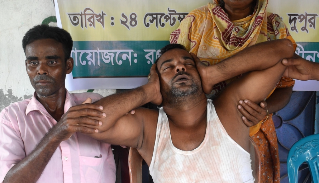 মানববন্ধনে বক্তারা বলেন, রঞ্জনিয়া গ্রামের বাসিন্দা রেজাদুল ইসলামের সঙ্গে তাঁর স্ত্রী যুথীর পারিবারিক কলহ চলে আসছে। স্বামীর সঙ্গে বনিবনা না হওয়ায় যুথী তাঁর বাবার বাড়ি বড়বড়িয়া গ্রামে থাকেন। শশুরের মৃত্যুর খবর পেয়ে গত ৭ সেপ্টেম্বর বিকেলে যুথী স্বামীর বাড়িতে আসেন। এ সময় রেজাদুল, তাঁর ভাই রশিদুল ও নিকেদুল যুথীকে বাড়িতে ঢুকতে বাধা দেয়। ওই সময় সেখানে উপস্থিত যুথীর খালাতো ভাই ও রেজাদুলের প্রতিবেশি সাইফুল ইসলাম এ ঘটনার প্রতিবাদ করলে রেজাদুল ও তাঁর ভাইদের সঙ্গে তাঁর কথাকাটাকাটি হয়। একপর্যায়ে কালিগ্রাম ইউনিয়নের ৪ নম্বর ওয়ার্ড যুবদলের যুগ্ন আহ্বায়ক ও উপজেলার বরগাছা গ্রামের বাসিন্দা শরিফুল ইসলাম ঘটনাস্থলে উপস্থিত হয়ে সাইফুলের জামার কলার ধরে রেজাদুলের বাড়ি থেকে বের করে দেওয়ার চেষ্টা করে। এ সময় সাইফুলের সঙ্গে শরিফুলের হাতাহাতির ঘটনা ঘটে। পরে শরিফুল ফোন করে ৫০-৬০ জন সন্ত্রাসী ডেকে আনে। সন্ত্রাসীরা লাঠি, রড ও চাকুসহ বিভিন্ন দেশীয় অস্ত্রে সজ্জিত ছিল। গ্রামের লোকজনের সামনেই যুবদল নেতা শরিফুল ইসলাম ও তাঁর লোকজন সাইফুলকে বেধড়ক মারধর করে। একপর্যায়ে সাইফুল অজ্ঞান হয়ে পড়লে তারা সেখান থেকে চলে যায়।
