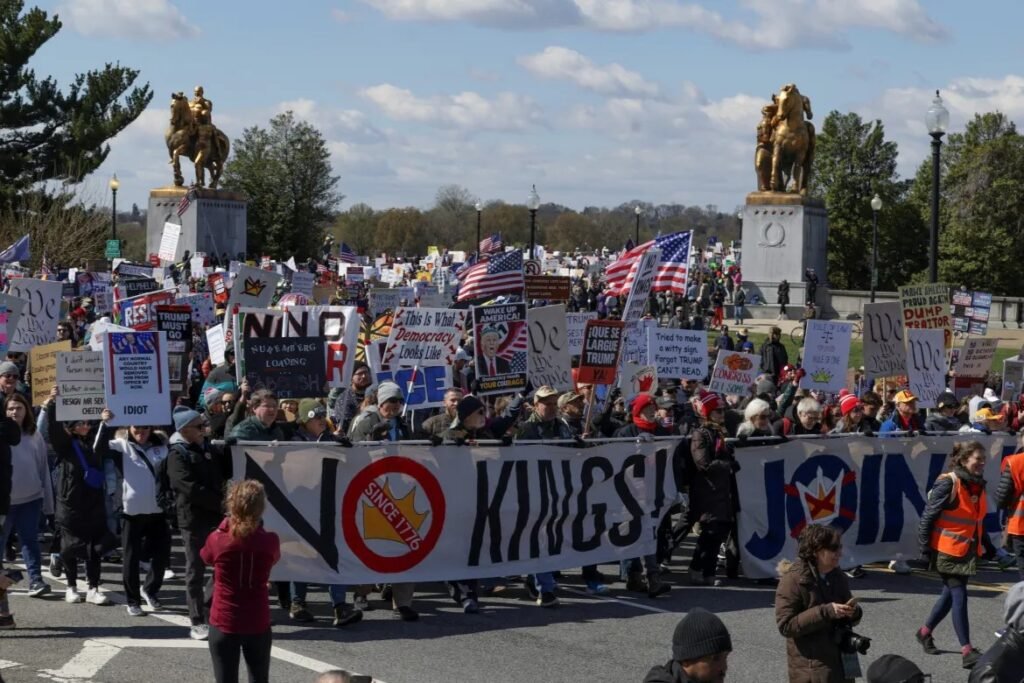 যুক্তরাষ্ট্রে প্রেসিডেন্ট ডোনাল্ড ট্রাম্প এর দ্বিতীয় মেয়াদে ক্ষমতায় আসার পর দেশজুড়ে আবারও জোরালো হয়ে উঠেছে “রাজা নয়” আন্দোলন। শনিবার অনুষ্ঠিত এই বিক্ষোভ কর্মসূচি ছিল তৃতীয় দফার দেশব্যাপী প্রতিবাদ।