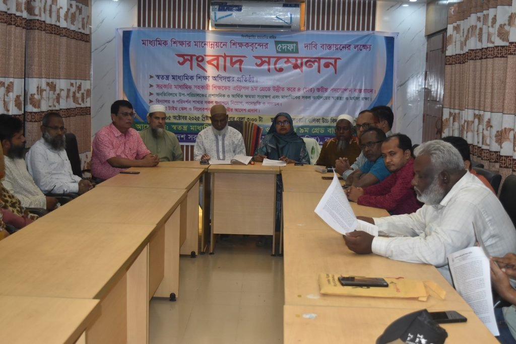 বাংলাদেশ সরকারি মাধ্যমিক শিক্ষক সমিতির নওগাঁ জেলা শাখার দপ্তর সম্পাদক ও নওগাঁ সরকারী বালিকা উচ্চ বিদ্যালয়ের প্রধান শিক্ষক মোছা: রাবেয়া খাতুন লিখিত বক্তব্যের মাধ্যমের তাদের দাবিসমূহ উপস্থিত সাংবাদিকদের পড়ে শুনান। দাবীসমূহের মধ্যে প্রধান ৫টি দাবি হলো: স্বতন্ত্র মাধ্যমিক শিক্ষা অধিদপ্তর প্রতিষ্ঠা করতে হবে। সরকারী মাধ্যমিকের সহকারী শিক্ষকের এন্ট্রিপদ ৯ম গ্রেডে উন্নীত করে ৪ স্তরীয় পদসোপান করতে হবে। অনতিবিলম্বে আঞ্চলিক উপ পরিচালকের প্রশাসনিক এবং আর্থিক ক্ষমতা সংরক্ষণসহ মাধ্যমিকের সকল কার্যালয়ের স্বাতন্ত্র্য ও মর্যাদা রক্ষা করতে হবে। বিদ্যালয় ও পরিদর্শন শাখার সকল শূন্যপদে নিয়োগ , পদোন্নতি ও পদায়ন দিতে হবে এবং বকেয়া সিলেকশন গ্রেড ও টাইমস্কেল এর মঞ্জুরী আদেশ প্রদান করতে হবে।
